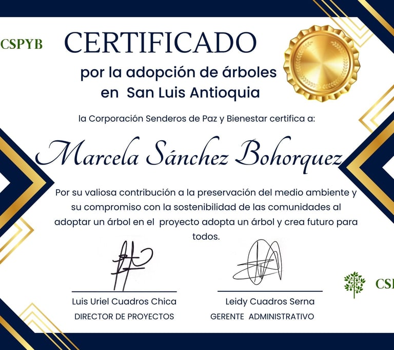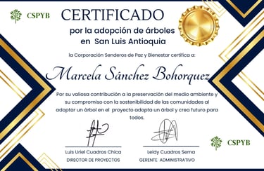 Senderos de Paz y Bienestar una ONG sin animo de lucro que trabajamos por la protección de los bosques nativos y el bienestar de las comunidades rurales de Antioquia. Reforestamos, restauramos ecosistemas, protegemos fuentes hídricas y generamos empleos verdes a través de nuestro proyecto insignia: “Adopta un Árbol y Crea Futuro”.
